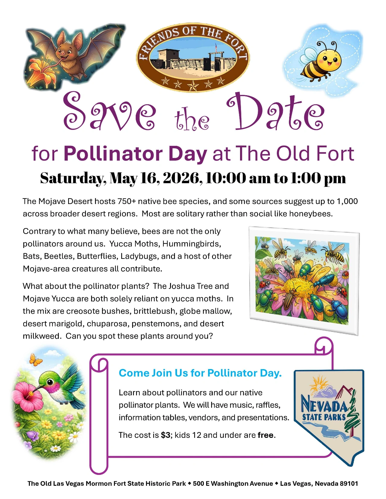 Organized to support the Old Las Vegas Mormon Fort State Historic Park and to advance awareness of The Old Fort and its contribution to the birth of the City of Las Vegas.